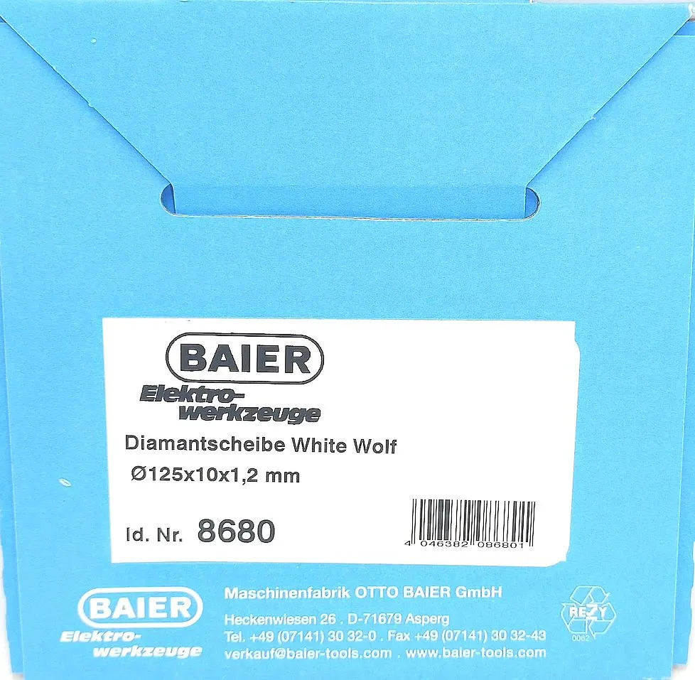 WHITE WOLF 125 mm firmy BAIER to profesjonalna tarcza diamentowa zaprojektowana specjalnie do cięcia gresu, ceramiki, glazury i płytek porcelanowych. Wyróżnia się bardzo cienkim segmentem tnącym, który gwarantuje precyzyjne, czyste i gładkie cięcie – bez pęknięć, odprysków i wyszczerbień. Idealna do zastosowań glazurniczych i prac wykończeniowych.