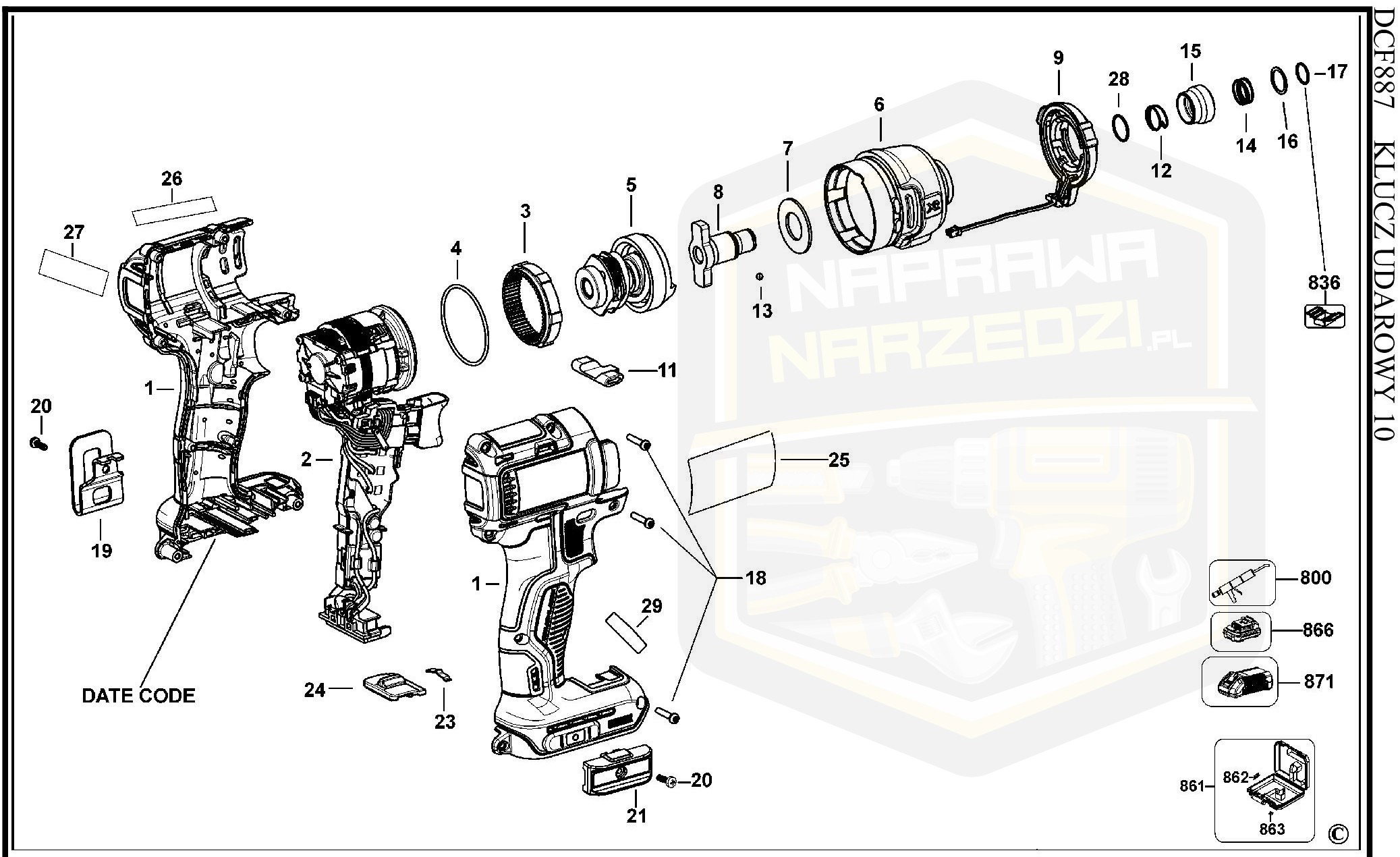 pasuje do modeli: DCF887 (type 1, 2)