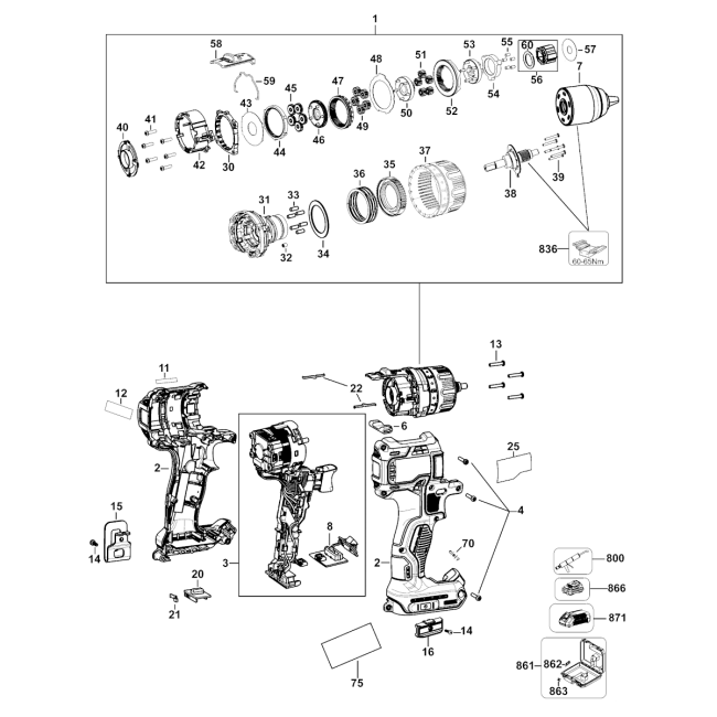 Korpus, obudowa do wiertarko-wkrętarki – nowy, oryginalny Dewalt