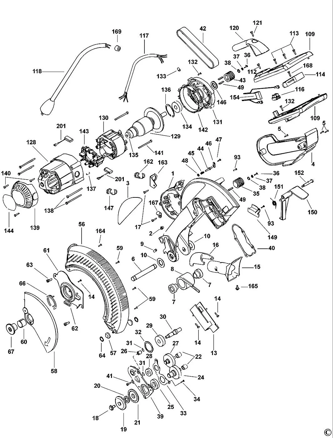 Wirnik, silnik + koło pasowe, łożyska do ukośnicy – nowy, oryginalny Dewalt