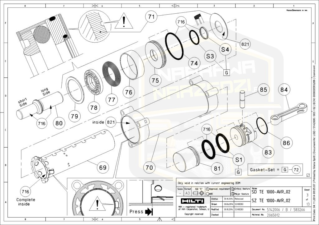 Wymieniając korbowód sprawdź stan tłoka wbudzającego i o-ringów na tłokach (wzbudzającym i pływającym) oraz uzupełnij bądź wymień oryginalny olej HILTI młotowiertarki – posiadamy w naszej ofercie!