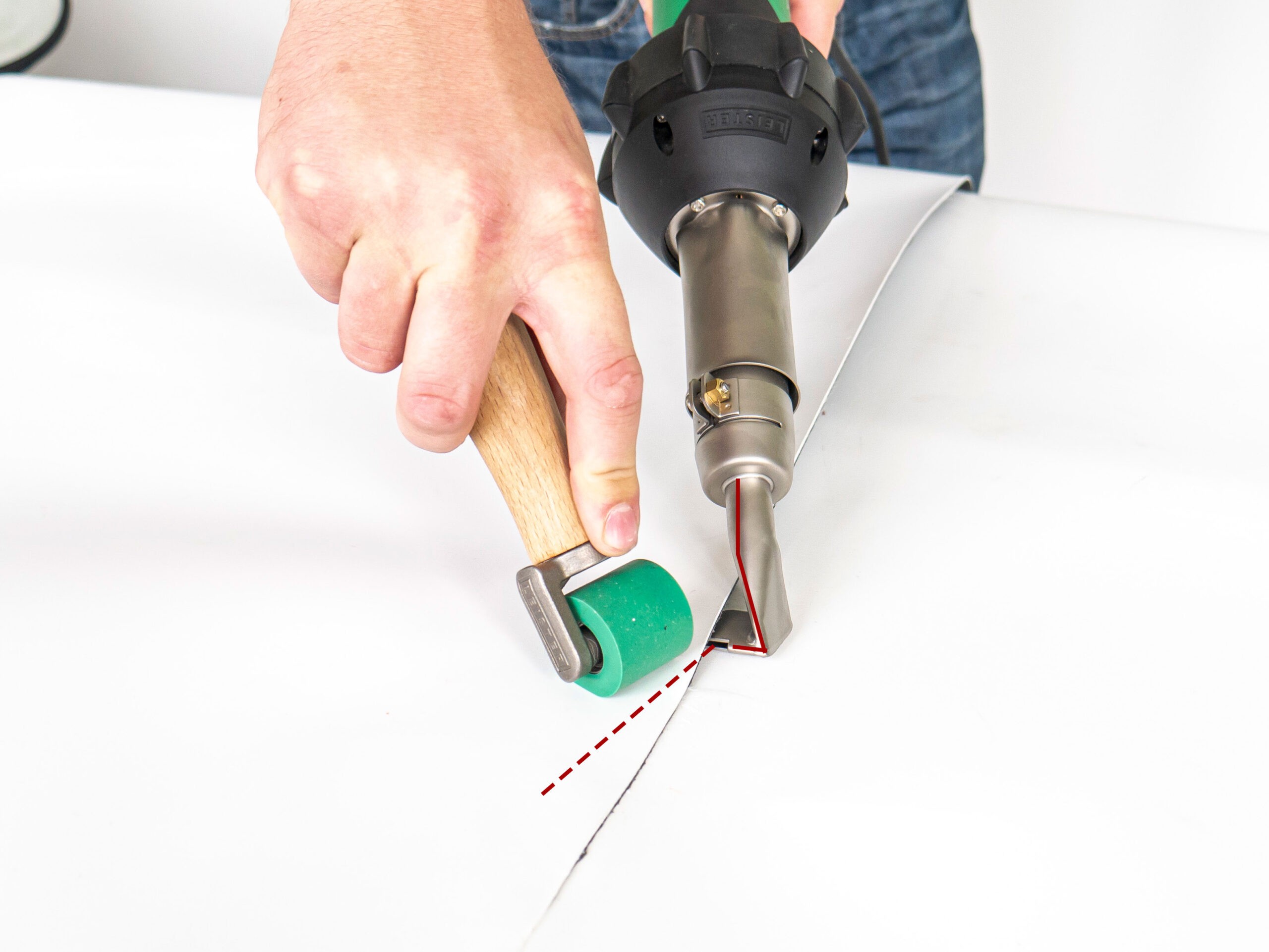 Dysze szczelinowe Leister są zaprojektowane w taki sposób, aby generować równomierny i skierowany strumień gorącego powietrza o określonej szerokości szczeliny. Dzięki temu są one przydatne do precyzyjnego ogrzewania, formowania lub sklejania różnych materiałów, w tym plastików, folii, membran czy elementów drewnianych. Ma ona szerokość szczeliny wynoszącą 20 mm i wysokość 2 mm oraz wygięta w prawą stronę z otwartym tyłem co oznacza, że dysza ma odchylony kształt, który może ułatwiać skierowanie strumienia powietrza w konkretnym kierunku.