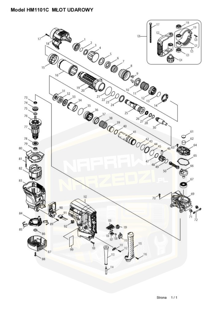 Łożysko kulkowe zapewnia płynność i stabilność ruchu obrotowego wewnętrznych komponentów narzędzia. To łożysko jest odpowiedzialne za wsparcie wału, umożliwiając jego równe i efektywne obroty, co jest niezbędne do utrzymania optymalnej wydajności i długotrwałości narzędzia.