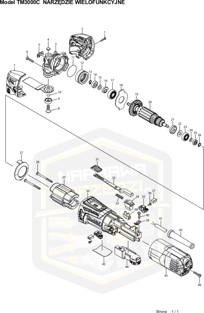 Przekładnia, obudowa, głowica do szlifierki wielofunkcyjnej – nowa, oryginalna Makita