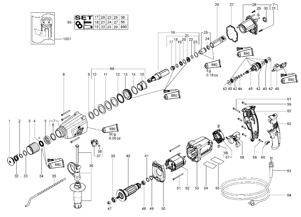 Metabo łożysko kulkowe wirnika z o-ringami do młotowiertarki KHE2444 LSV5 BHE2442 143115890