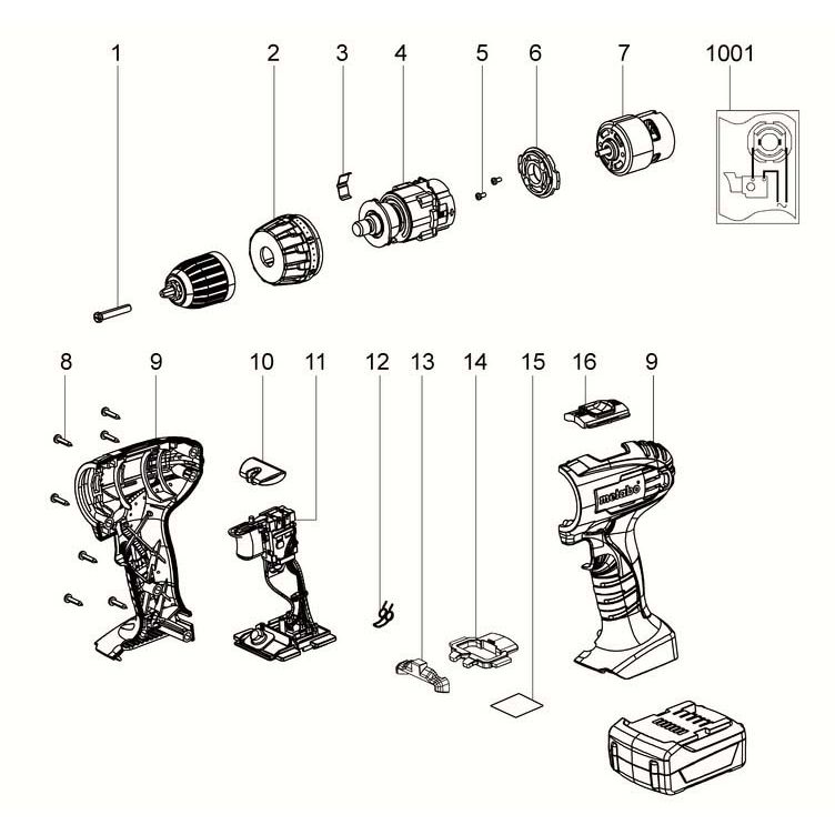 Włącznik + korpus, obudowa do wkrętarki – nowy, oryginalny Metabo