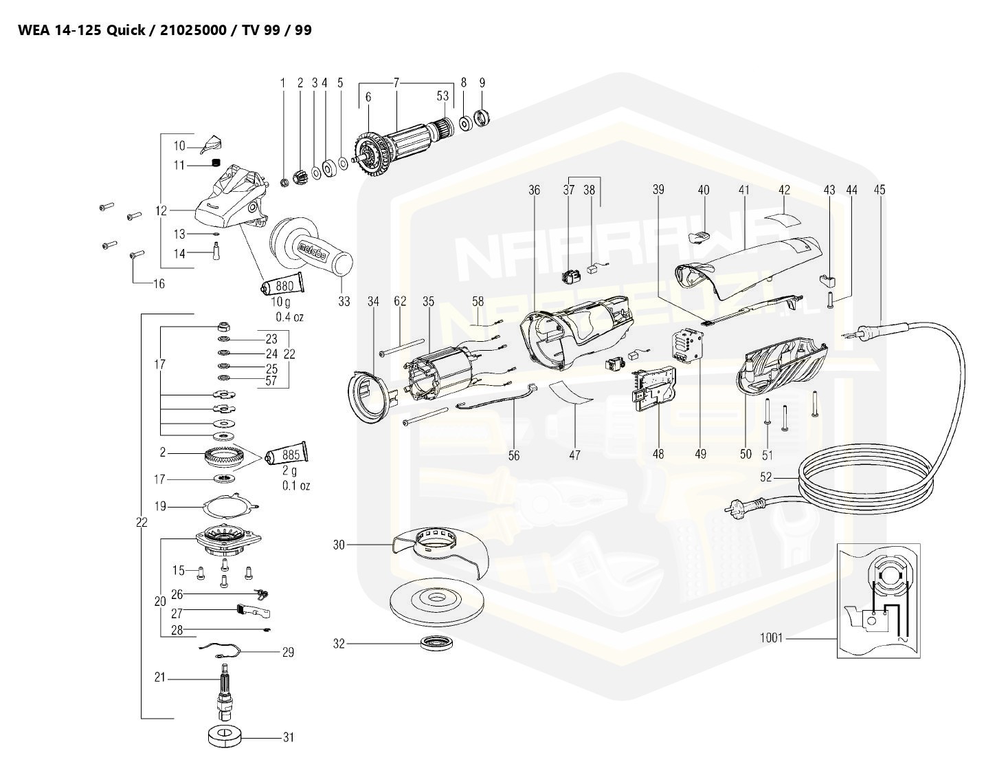 pasuje do modeli: WE 14-150 Quick, W 11-125 Quick, WE 14-125 Plus, WE 14-150 Plus, WE Partner Edition, WE 14-125 VS, WQ 1400, WE 14-125 Quick, WEA 14-125 Quick, WA 11-125 Quick, WEA 14-125 Plus, WEA 14-150 Plus, WE 14-125 Inox Plus, WA 1000 Quick, PWE 11-100, RF 14-115, RS 14-125