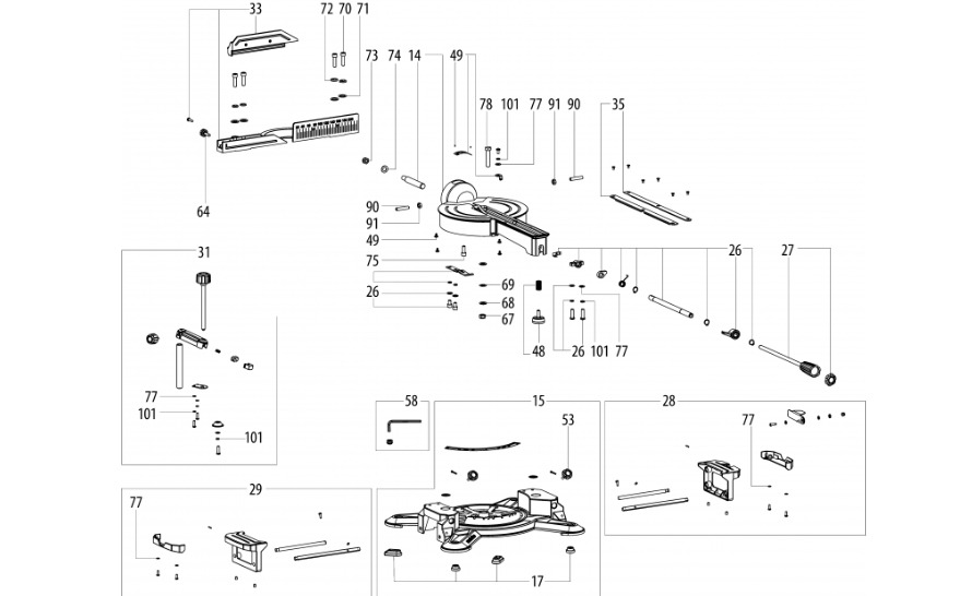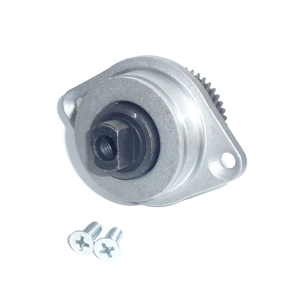 Przekładnia kompletna do ukośnicy jest złożonym zestawem komponentów, niezbędnym do prawidłowego działania mechanizmu napędowego maszyny. Zębatka w zestawie jest odpowiedzialna za przenoszenie momentu obrotowego z silnika do wrzeciona. Tarcza łożyskowa, dołączona do zestawu, działa jako wsparcie dla łożyska wrzeciona, zapewniając stabilność i wytrzymałość całego mechanizmu. Łożysko wrzeciona w zestawie umożliwia gładkie i stabilne obroty wrzeciona, co jest kluczowe dla dokładności cięcia. Wrzeciono, będące częścią zestawu, jest osią, na której umieszczane są tarcze tnące. Dołączone śruby (2 sztuki) służą do mocowania i zabezpieczania wszystkich wymienionych komponentów.