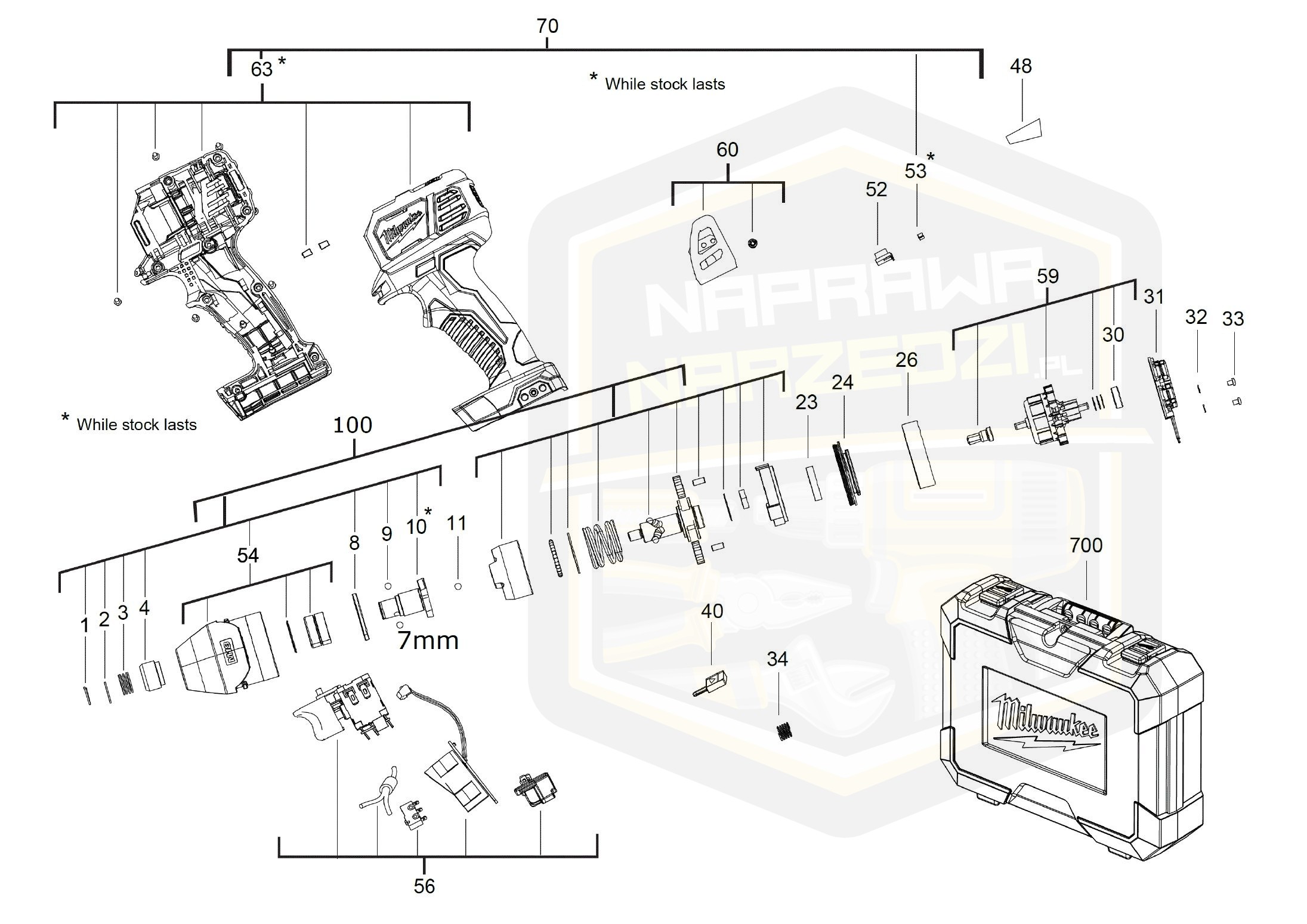 WIRNIK WRAZ Z ŁOŻYSKAMI KOMPLETMY DO ZAKRĘTARKI UDAROWEJ 1/4” – NOWY ORYGINALNY MILWAUKEE