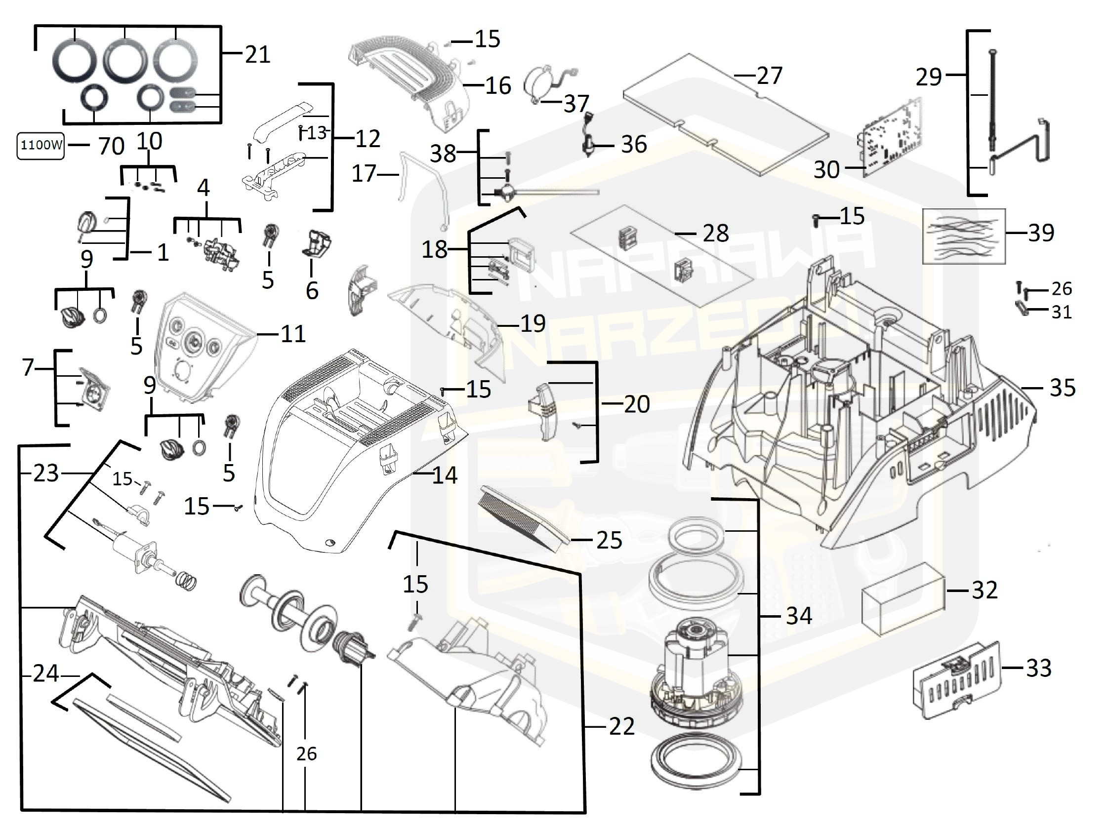 Panel estetyczny do sterowania odkurzaczem AS 30 MAC. Jest to zaawansowany panel, który posiada wiele funkcji, umożliwiających ustawienie mocy odkurzacza do rodzaju powierzchni, którą chce się określić. Panel sterowania również posiada funkcje zmiany trybu pracy odkurzacza, dzięki czemu można skutecznie usuwać zarówno lekkie, jak i trudne efekty. Jest wyposażony w wyświetlacz LED, który służy do obsługi urządzeń, a także inne standardowe parametry. Dodatkowo, panel posiada zaawansowane funkcje ochrony przed przegrzaniem i przeładowaniem, co zwiększa bezpieczeństwo jego użytkowania.