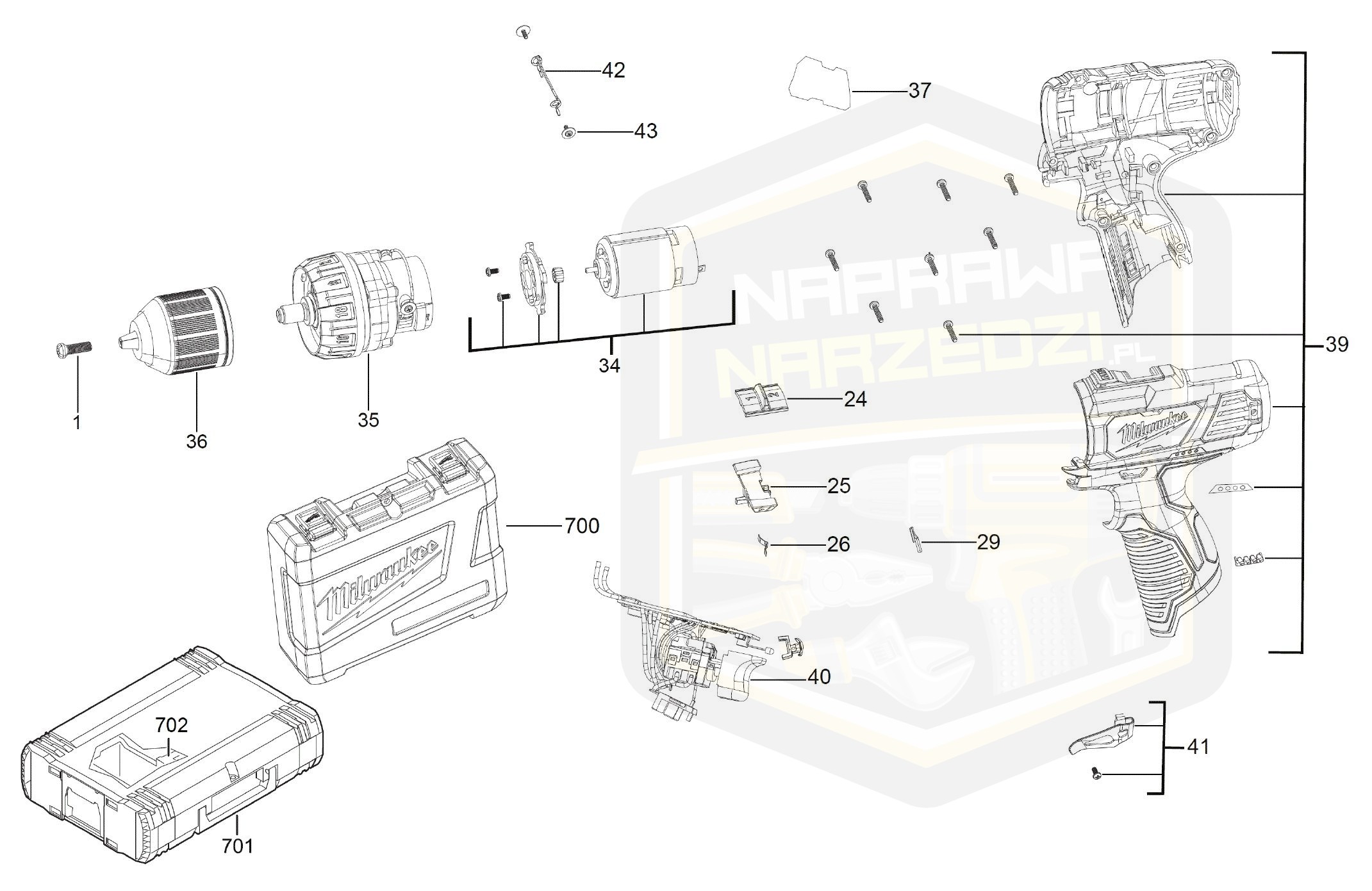 MILWAUKEE przekładnia komletna do wiertarko-wkrętarki M 12BDD 4931435979